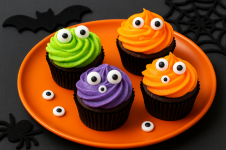 5. Decorate like mad scientists. Scoop each color into its own piping bag. Swirl frosting high on cooled cupcakes, then press on candy eyes, sprinkle “warts,” or stick pretzel “antennae.” Encourage kids to invent their own creatures—no two monsters should match.
